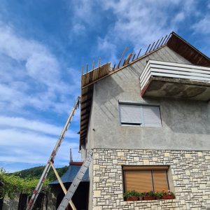 Ne radimo kozmetičke popravke i kratkoročna rješenja. Svaki projekat restauracije krova započinje uklanjanjem postojećeg pokrivača i detaljnom provjerom konstrukcije, nakon čega slijedi izrada nove, stabilne i dugotrajne krovne konstrukcije, prilagođene objektu i vrsti pokrivača. Završna faza uključuje ugradnju novog krovnog pokrivača, čime objekat dobija potpuno novi, funkcionalan i siguran krov.